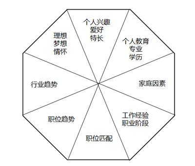 按照找工作的因素來分,大致分為:理想、個人興趣愛好及特長、個人教育程度(專業)、實習及工作經歷、行業趨勢、職位趨勢、職位匹配度、個人職業階段、家庭因素等。信息源:揭陽招聘網_m.0769al.com